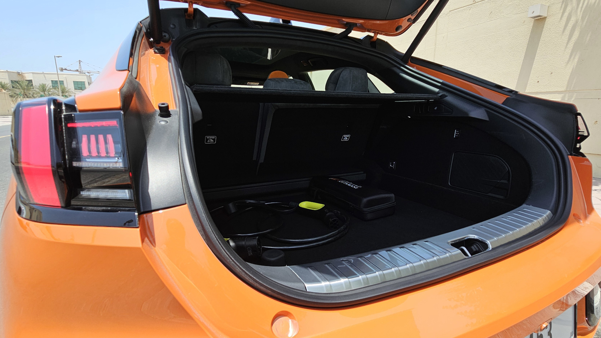 The infotainment screen with the 8155 Snapdragon computing platform is only average in responsiveness. As with most cars (Tesla excluded), the voice controls are less efficient. It recognises commands but doesn’t always act intuitively, though you can call on the virtual assistant, by saying “Hi Zeekr” to lower the window or change the radio channel. With that said, Android Auto works flawlessly. Apple users are accommodated too with CarPlay. Furthermore, audio quality is the 001’s strong suit. The Yamaha system with 12 speakers delivers an exceptional listening experience. You also have the option to switch sound modes such as Jazz Club and Theatre. And while you enjoy that music, you can get that genuinely effective massage function on the go. Unfortunately, while it does have a wireless charger, charging is slow and the flat, awkward angle isn’t ideal for access. And besides BT, the biggish orange central cubby houses 2 USB ports for charging and connectivity, one of which has a 27W capacity. The rear passengers have their own dedicated 18W USB-A and 60W USB-C ports to power their devices. There’s also an internal cabin camera, which had me thinking about privacy concerns, but it allows you to record and store memories from your favourite journeys.