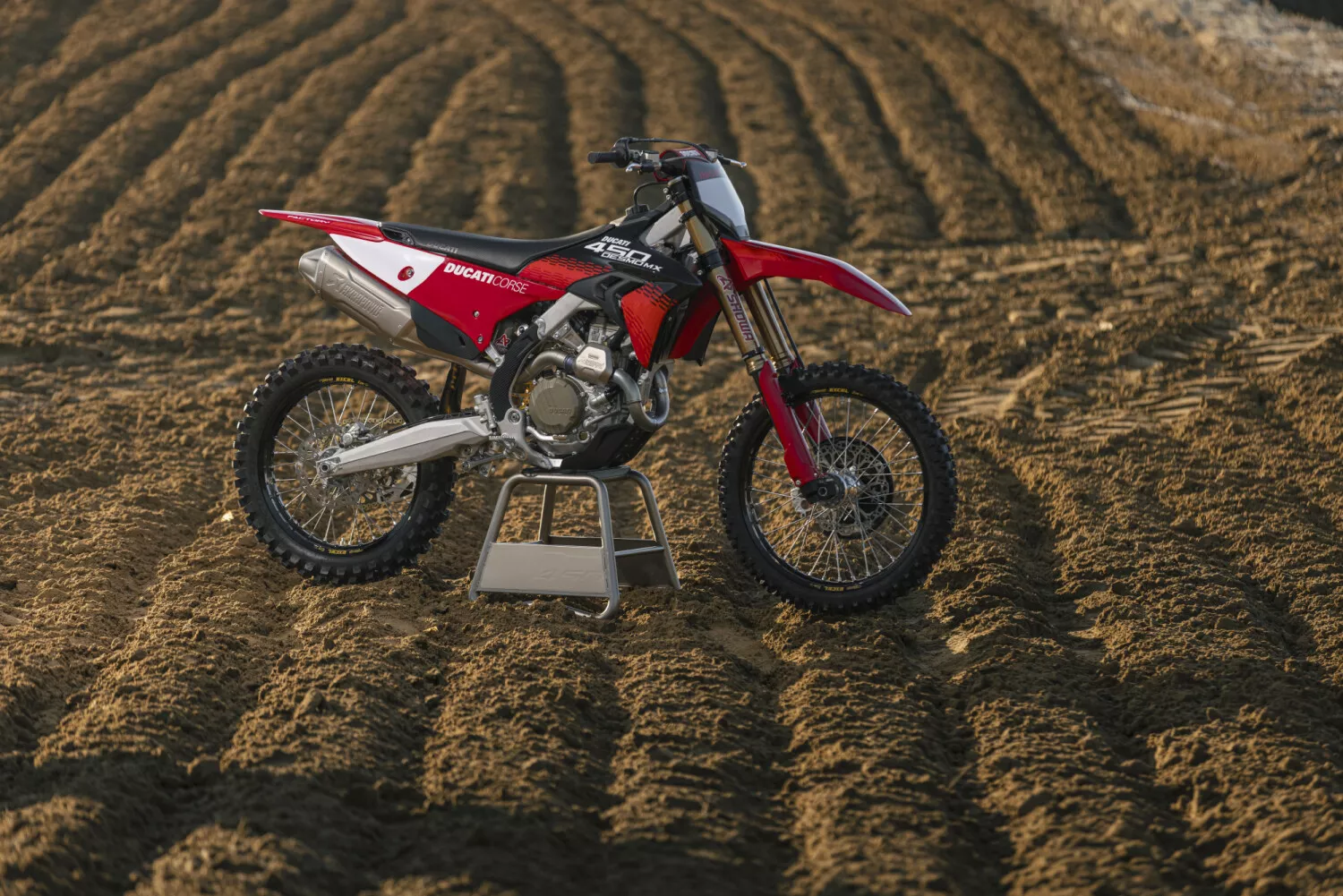 The Desmo450 MX Factory comes exclusively in Ducati Corse 2025 Livery, featuring a bold black scheme with Ducati Red accents and striking graphics inspired by Ducati’s MXGP and MotoGP challengers.