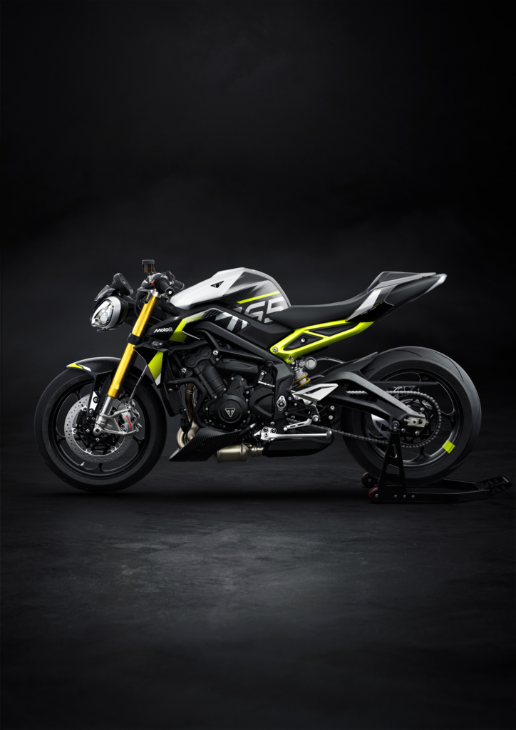 The Triumph Street Triple 765 RX is a single model year offering from the brand, whereas the Moto2 edition will be limited to 1,000 units globally to celebrate the British marque’s association with the Moto2 World Championship, where it provides race-prepped 765cc triple engines.