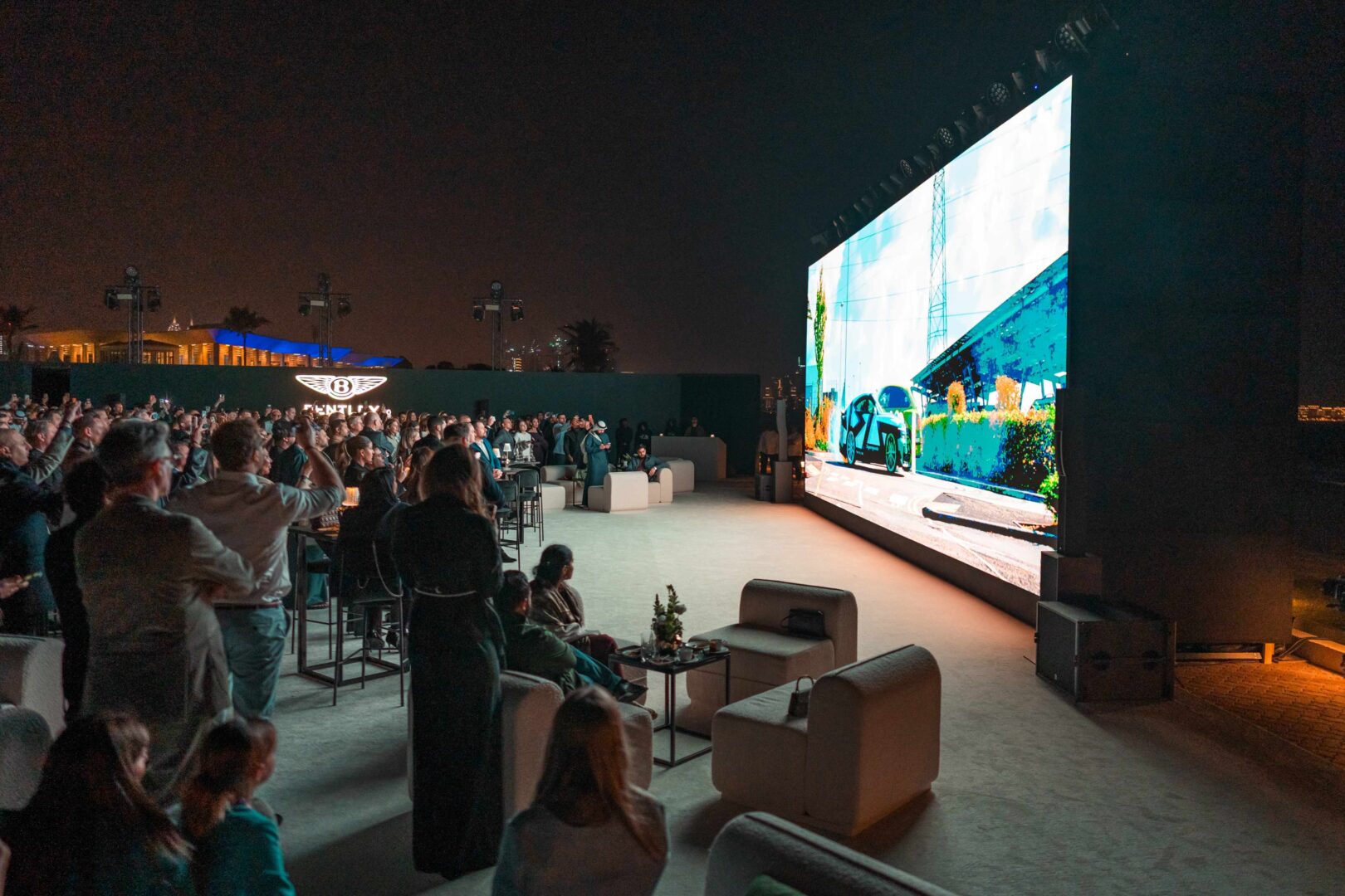 At 21:00 local time, Supersports: FULL SEND was released on all of Bentley’s digital platforms worldwide while it was also screened on a 12m wide screen at the venue. The film is about a modified Supersports driving around the Crewe campus of Bentley. After that, the actual car from the film was driven into the event space by Pastrana.