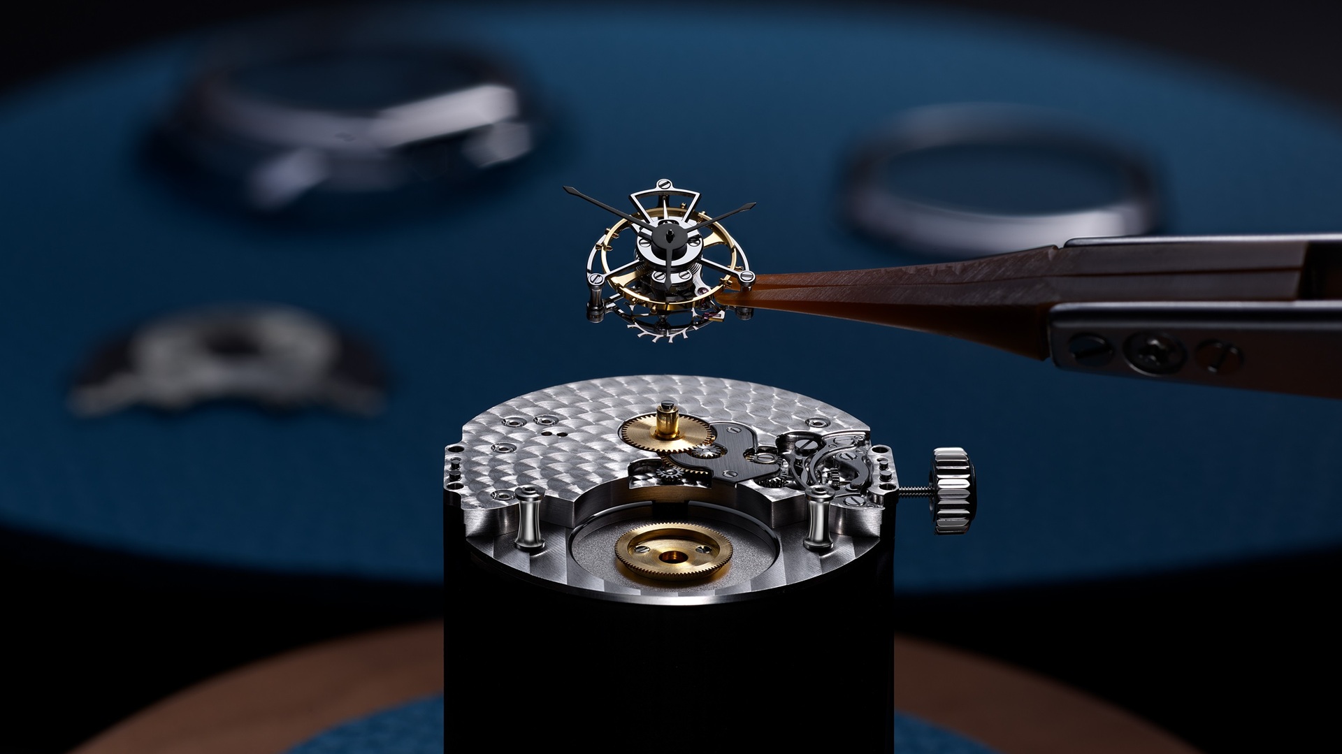 Hours and minutes indicated on the dial at 12 o’clock. One-minute tourbillon at 6 o’clock. Winding and time-setting via the crown at 3 o’clock.