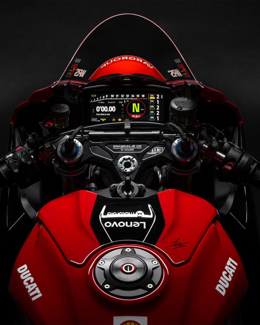 The motorcycle — Panigale V4 Márquez 2025 World Champion Replica, limited to 293 units worldwide, is unequivocally inspired by the 2025 Ducati GP25 MotoGP prototype that took Márquez to the 2025 MotoGP World Championship.