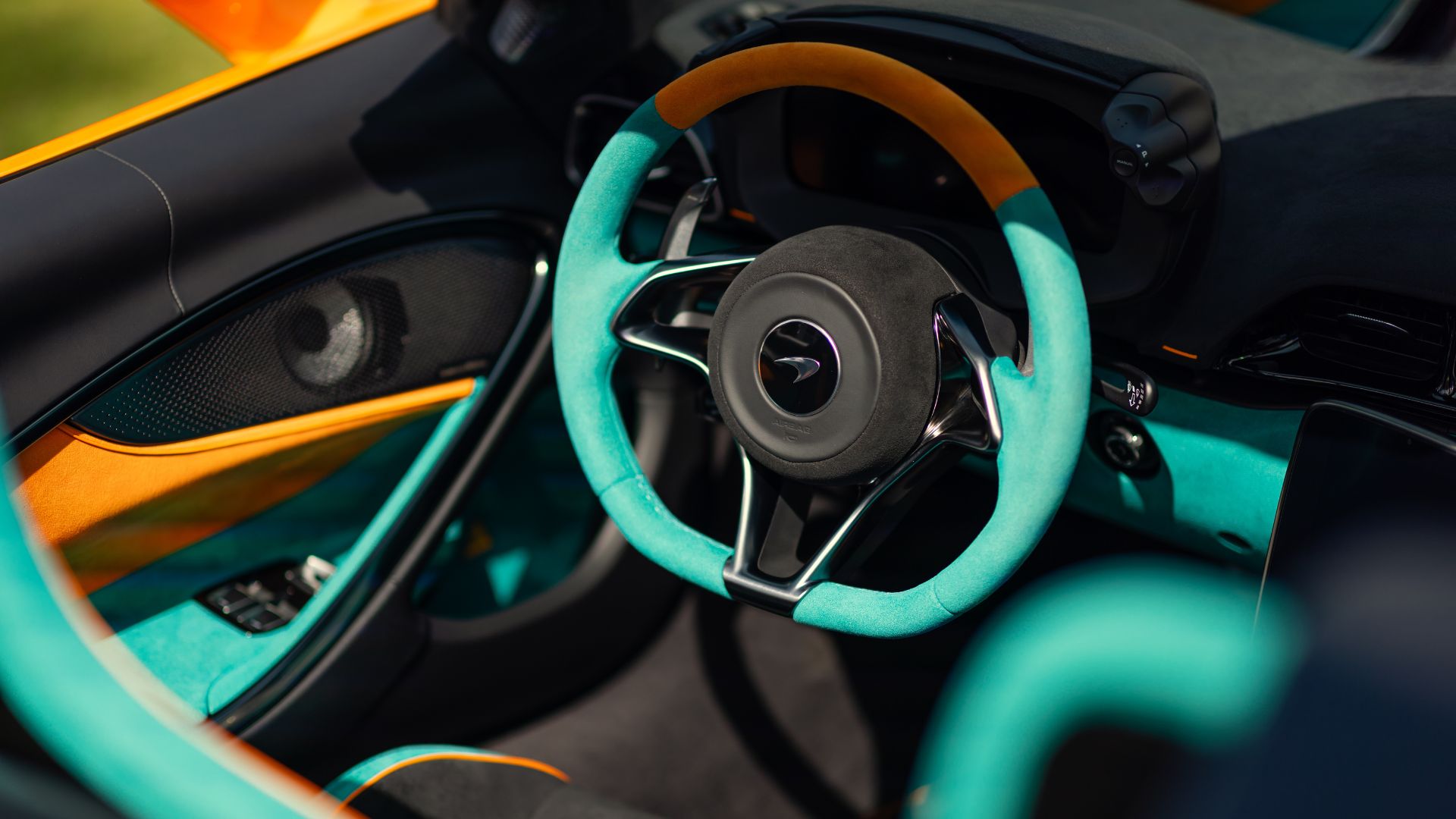 McLaren MSO also exhibited a 750S Spider commissioned as a deeply personal homage to founder Bruce McLaren featuring British and New Zealand flags symbolising McLaren’s roots and a map of the Silverstone circuit. Also on display was a MCL38 Celebratory Limited Edition 750S – a limited edition unit, drawing inspiration from the MCL38 race car, created to celebrate McLaren’s ninth Formula 1 Constructors’ Championship.