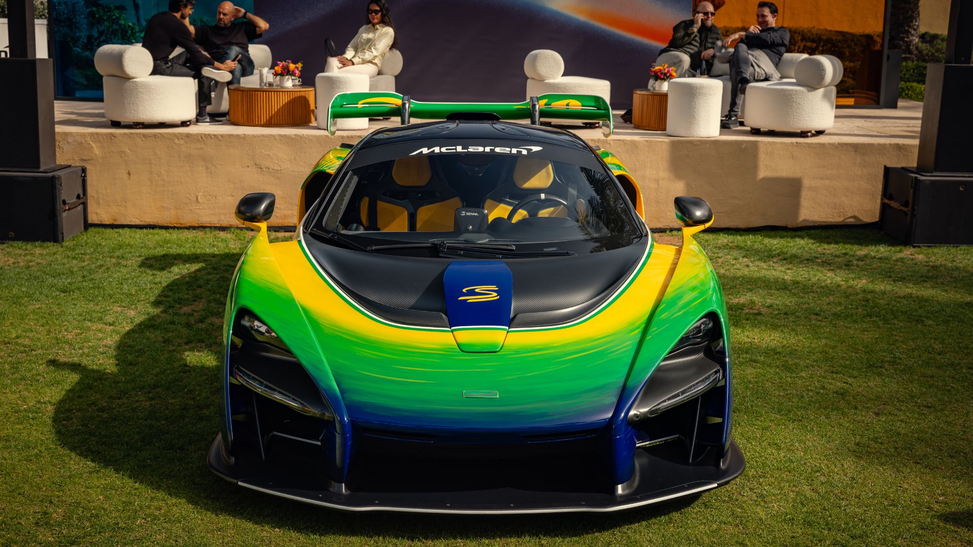McLaren had multiple MSO-commissioned cars on display, many of them were generously lent by their owners, reflecting both the pride they take in their commissions and the enduring relationships built through the MSO process. The collection comprised the Senna Sempre – McLaren’s emotive tribute to Ayrton Senna with a livery featuring vibrant colours inspired by Senna’s Brazilian heritage, alongside hand-painted portraits, race numbers, and motion-inspired wash techniques. Also stationed at the venue was a Senna with an exposed full gloss carbon fibre finish inside and out along with a 750S featuring Geo Hex theme, inspired by the structure of carbon fibre, in fire black and helios orange.