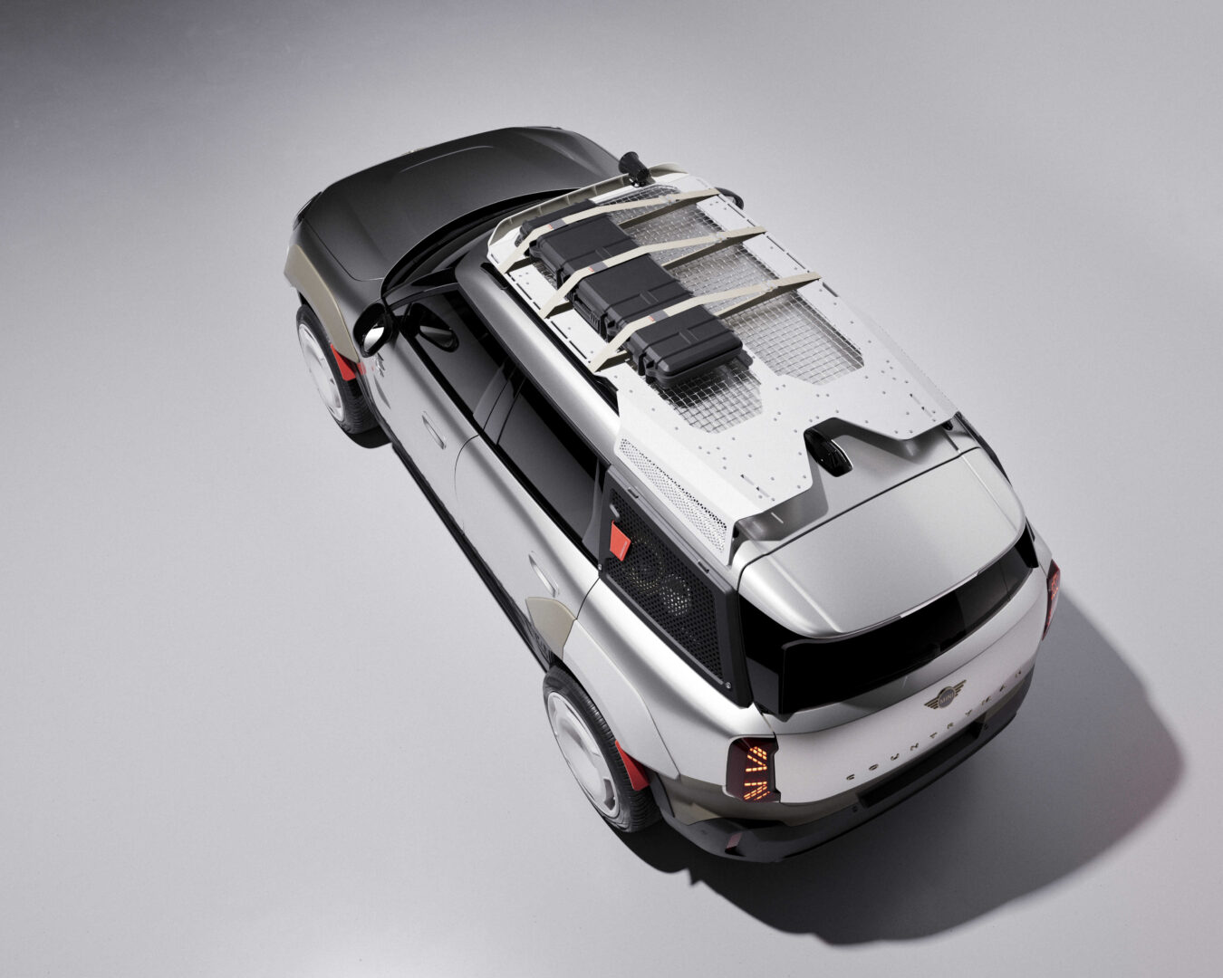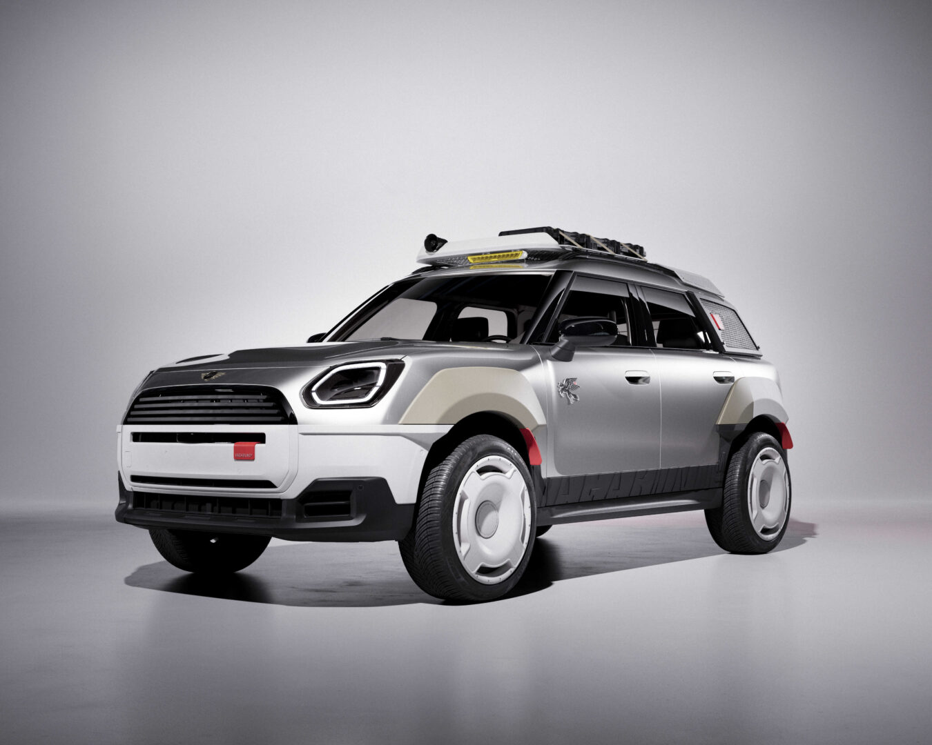 These cars have received many exterior modifications, designed to alter proportions typical of the MINI Countryman. Modified wheel arches allow for the vehicle to acquire a broader design. The front and rear bumpers have been redesigned and incorporated into the new body. The car’s side panels include three-dimensional logos of brands used, as well as a modified radiator grille.