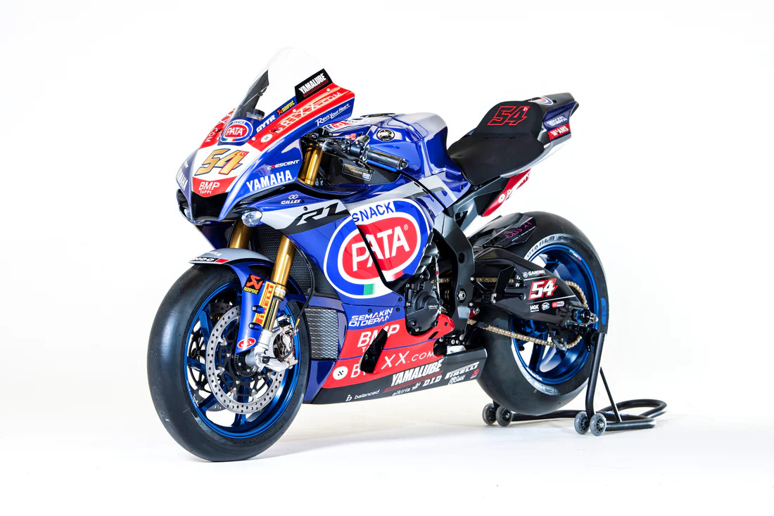 The paint on the Replica replicates the 2021 Pata Yamaha with Brixx scheme, exact sponsor logos, and Razgatlioglu’s #54 race number on the fairing and seat unit.