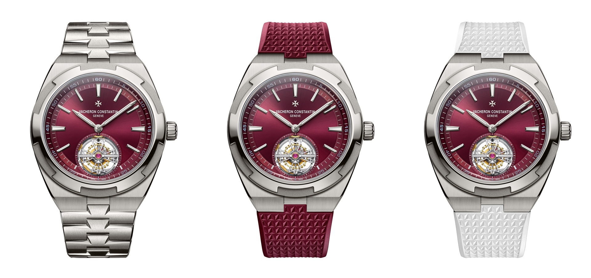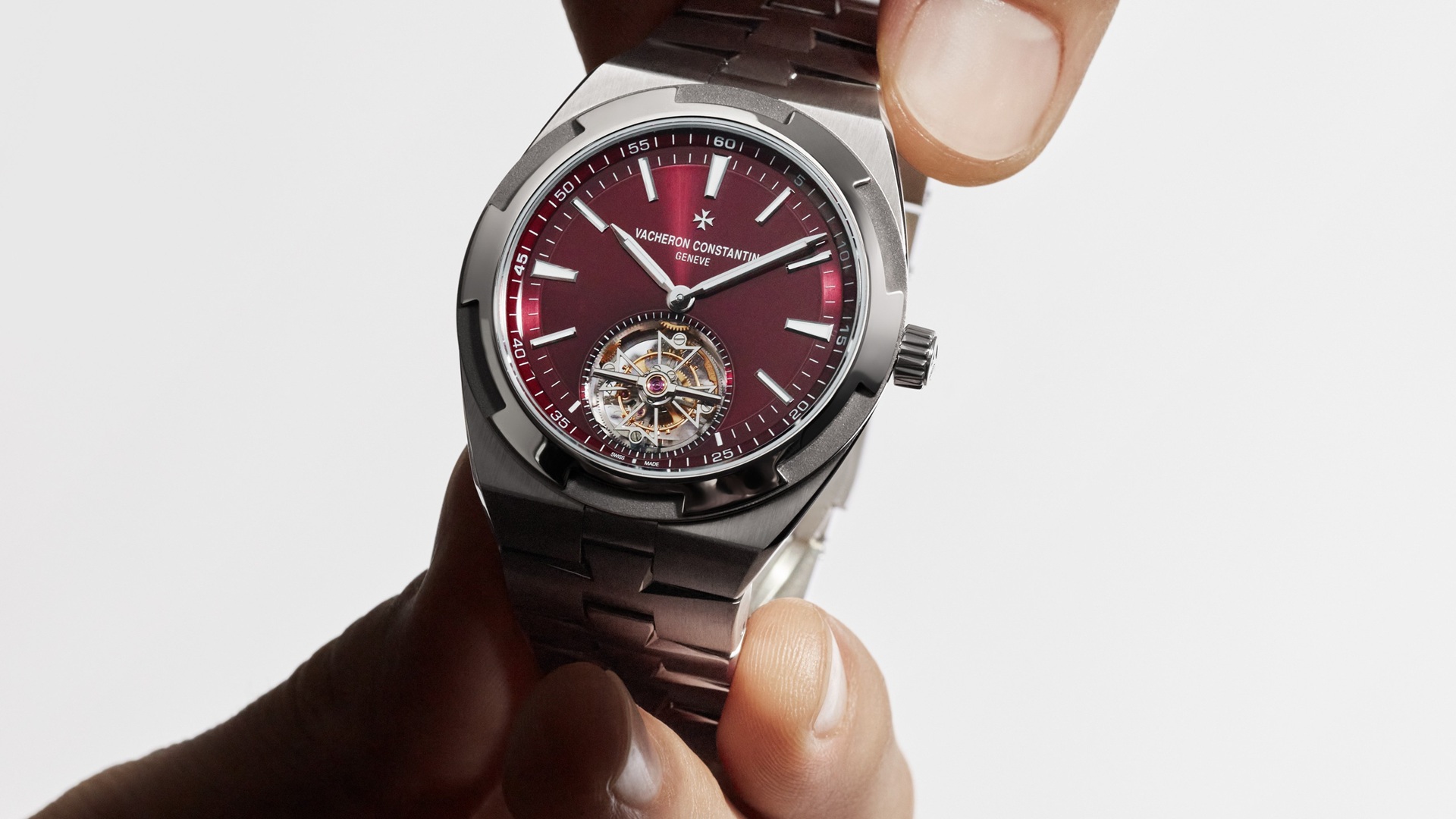 It is VC’s Overseas Tourbillon with a deep red dial and a grade 5 titanium case, the first time the brand has combined this dial colour with this metal.
