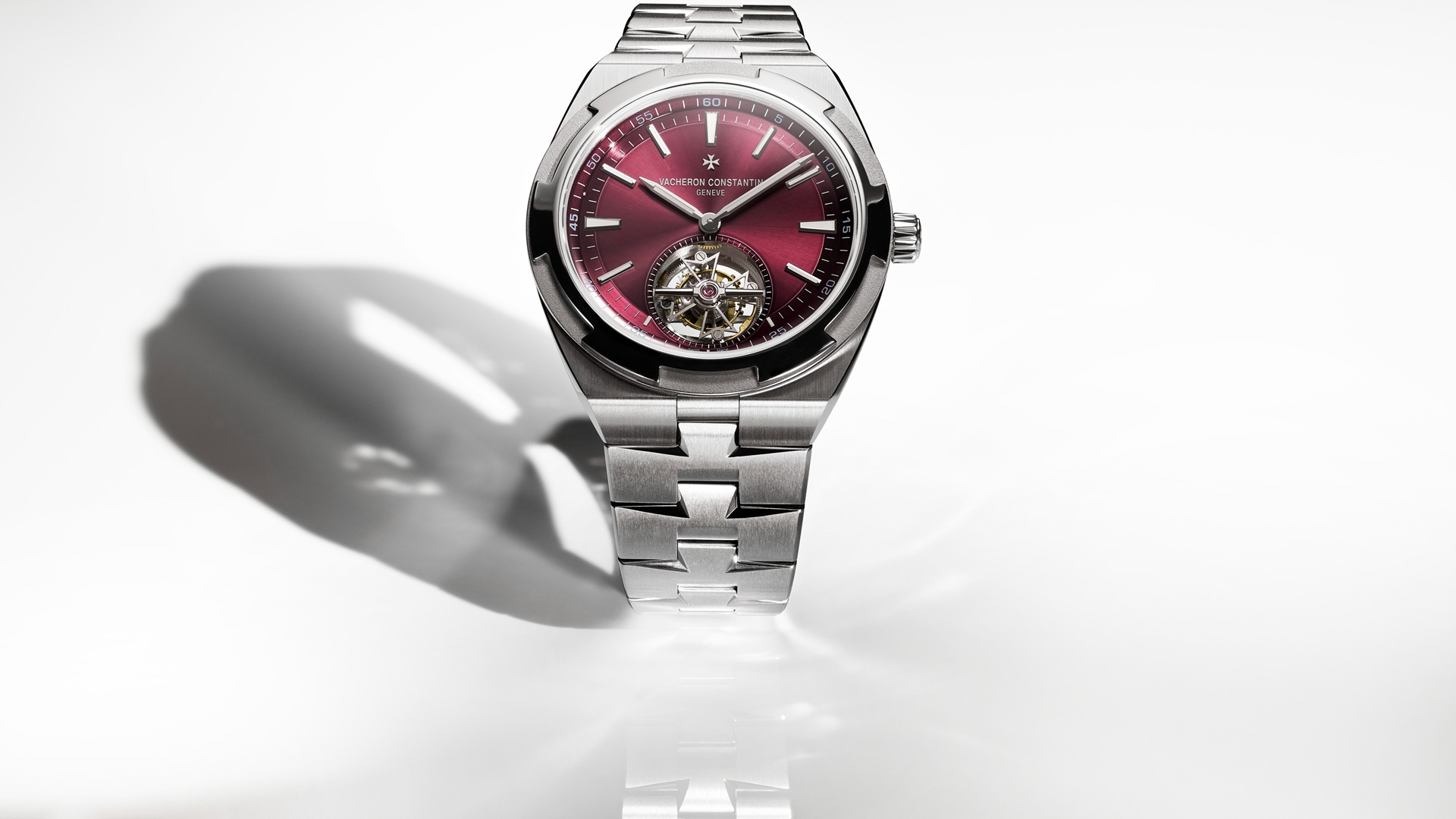 It is VC’s Overseas Tourbillon with a deep red dial and a grade 5 titanium case, the first time the brand has combined this dial colour with this metal.