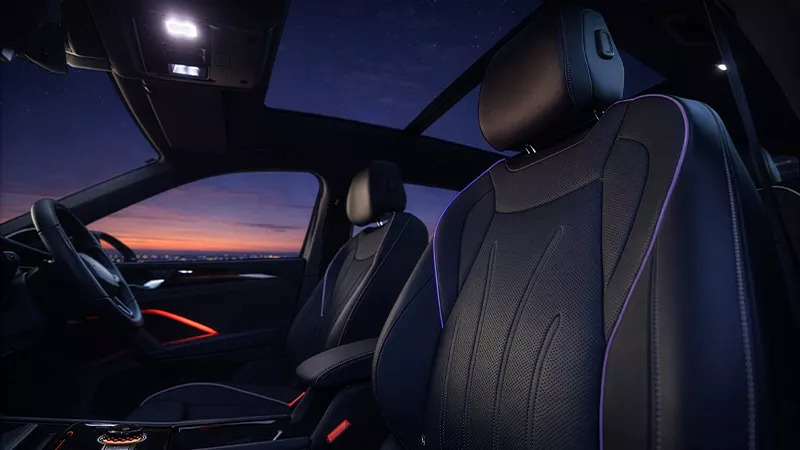 The VW Tayron R-Line exhibits a similar interior design to the Tiguan R-Line, albeit with the addition of a silver accent trim. The Interior features a 15-inch touchscreen infotainment system, a 10.25-inch digital driver’s display, ambient lighting with 30 colours and 12-way electric front seats with memory, heated and ventilated seats with an 8-mode massage setting.
