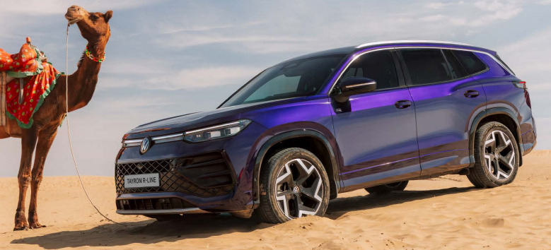 Volkswagen India lists seven colour options for the VW Tayron R-Line, which include Dolphin Grey Metallic, Oyster Silver Metallic, Ultraviolet Metallic, Cipressino-Green Metallic, Nightshade Blue Metallic, Grenadilla Black Metallic, and Oryx White Mother-of-Pearl Effect.